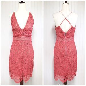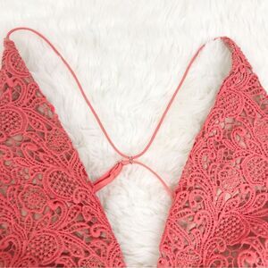 STYLESTALKER Coral Crochet Lace Mini Dress Spaghetti Strap Amelie Sz Medium New