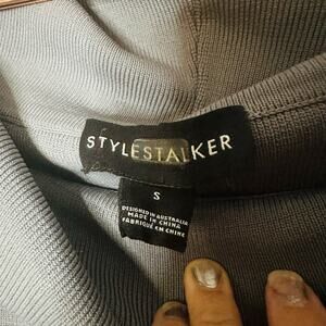 STYLESTALKER Grey Cowl Oversized Long Sleeve Short Mini Sweater Dress in Size Small is a perfect blend of comfort and casual chic. Crafted from soft sweater knit fabric in a versatile grey hue, this dress features an oversized fit and a cozy cowl neckline, creating a relaxed yet stylish silhouette. Its long sleeves offer warmth and comfort, while the short mini length adds a touch of flirty charm. Ideal for various occasions, from laid-back outings to casual evenings.