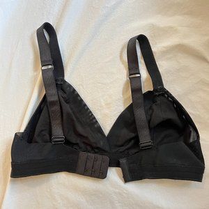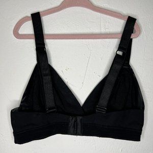 Stylestalker soft bralette with leopard printed cotton modal shell, black power mesh folded trim at neck and 3/4" wide adjustable satin bra straps. Fully lined, not sheer, great for layering. Gently worn, in good preowned condition.