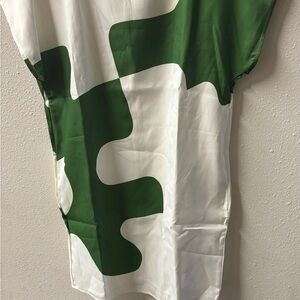 Chic asymmetrical dress by STYLEWE. Features bold green and white pattern. Perfect for a stylish look.