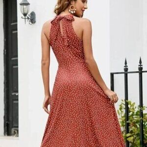 Beautiful Soft Fabric, POLKA DOT RED MAXI HALTER DRESS