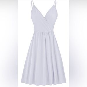 STYLEWORDV NeckFloral/Solid Spaghetti StrapSummer CasualSwingSundress withPocket