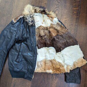 Custom upcycled handmade unisex jacket with real leather and a cozy soft real fur lining