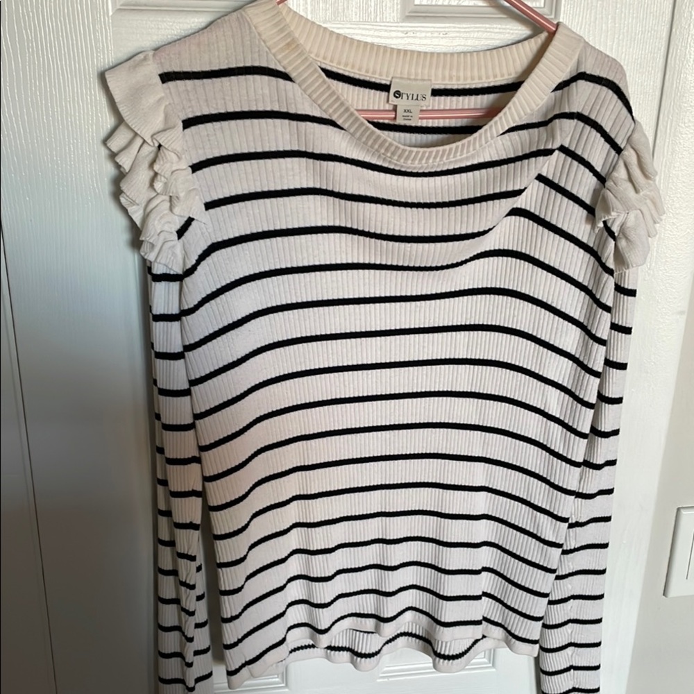 STYLUS Cream Ribbed Ruffled Blouse