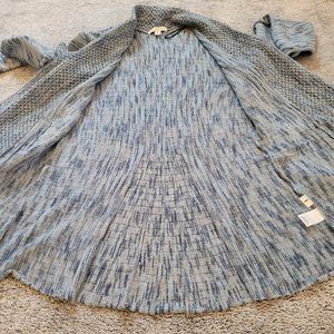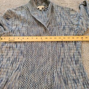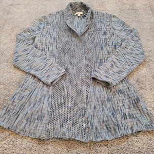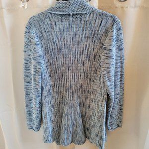 STudio Works Womens Cardigan Petite XL Blue Crochet Knit Long Pleat Back 16042
