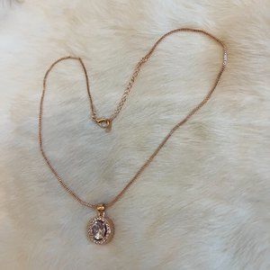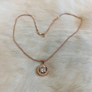 STunning Rose Gold Tone Round Crystal Rhinestone Pendant 18" Necklace 12450