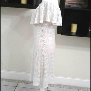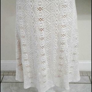 S-Twelve Boho Chic Romantic Bridal Off White Laced Ruffled Midi Dress