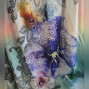 Vibrant mini dress with lace accents. Features a multicolor design. Perfect for a bold statement. size small like new condition