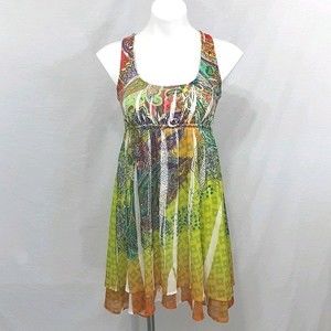 S-Twelve Multiprint Empire Waist Racerback Tunic Dress Small Boho Chic