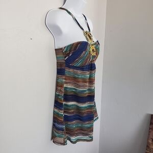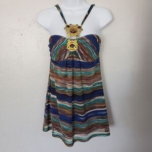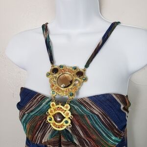S-Twelve Sample Tank Top Blouse Big Metal Gold Gem Mesh Green Blue Brown Boho