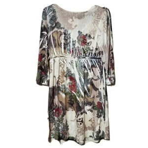 Brand: S Twelvecolor: ivory, multicolorsize: largefabric: 95% polyester, 5% spandexlong sleevevneckstudded detailingslinky soft materialmeasurementsfrom armpit to armpit-17"waist-14"hip-21"from shoulder to bottom of dress-38"item is in excellent preowned condition