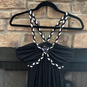 S-Twelve black and white maxi dress with elastic waistband and low back. I had to use 2 hangers to get better pictures of the front and back. Small. Approximate measurements are 13 pit to pit and length from shoulder is 47