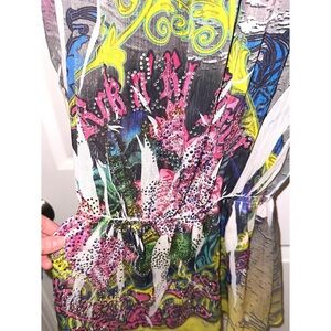S-Twelve colorful tunic top with peek a boo sleeves size large