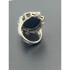 SU Vintage Sterling Silver Black OnyxCameo Ornate Filigree Setting Ring Sz 7.25