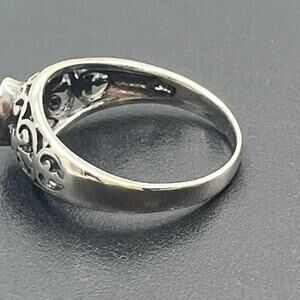 SU Vintage Sterling Silver THAILAND Women Black Onyx Scroll Filigree Ring Sz 8.5