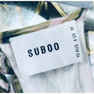 Elevate your summer wardrobe with this stunning palm tree print playsuit from Suboo. Perfect for any occasion, this sleeveless romper features a high neckline with tie closure and pleated accents. The backless design, ruffle detailing, and slimming fit add a touch of sophistication to this chic and sexy one-piece. The lightweight, 100% cotton material ensures comfort and breathability, making it ideal for travel, activewear, parties, or casual outings. The collarless style, strap detailing, and vibrant pink and green color combination make this romper a true statement piece. Available in size 6, this regular fit playsuit is machine washable and perfect for the summer and spring seasons.