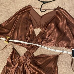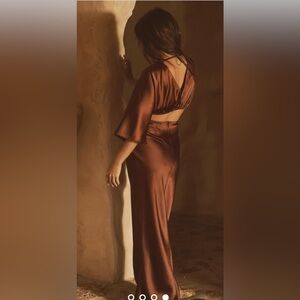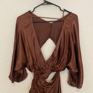 SUBOO Tate Satin Front Cross Draped Maxi Dress Small