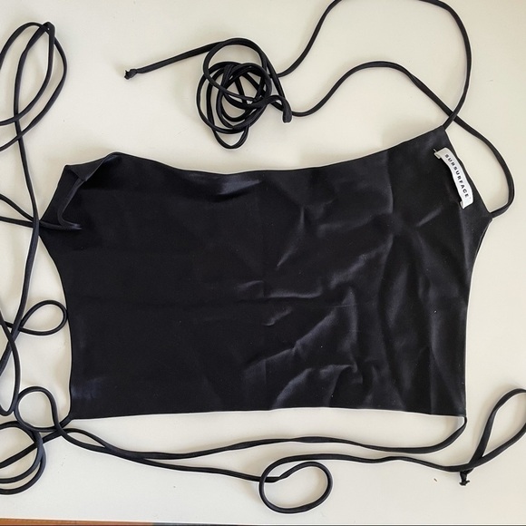 SUBSURFACE Silk Ribbon Tie Back Crop Top in Black