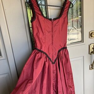 🩸SUBTERRANEA MEDIEVAL BURGUNDY GOTH DRESS TAFFETA WITH BLACK LACING AND TRIM🩸