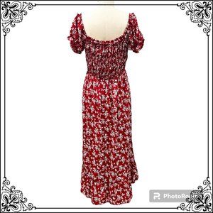 SUCREFAS Floral Ruffle-Hem Off-The-Shoulder Midi Dress - Size L