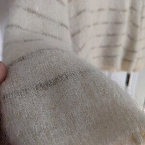SUD EXPRESS round crew neck alpaca mohair cream beige tan striped sweater Large