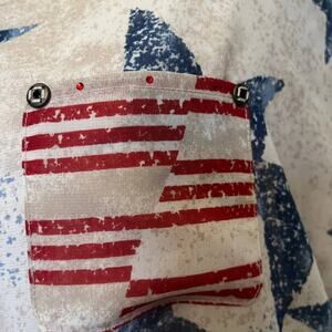 SUE WHO? Americana Womens Top Sz L Festival Stars Stripes Rhinestone Patchwork