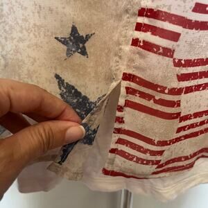 Sue Who?, Americana, USA flag print, stars and stripes, patriotic top, sheer blouse, lightweight, summer festival, boho chic, Fourth of July, 4th of July outfit, rustic Americana, oversized fit, boxy cut, pocket detail, casual chic, indie style, layering top, Memorial Day