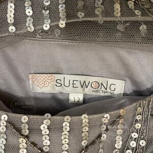 SUE WONG 12 Champagne Silver Beaded Sequin Bridal Formal Cocktail Evening Dress