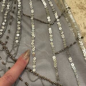 Gently worn, presenting beautifully. As with most Sue Wong pieces, there are a few areas with loose threads and minimal bead loss as shown in last 5 photos. The structure, zipper, lining, and overall bead pattern remain intact and stunning.