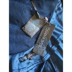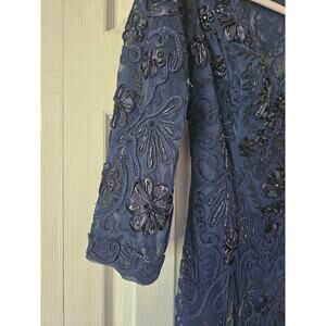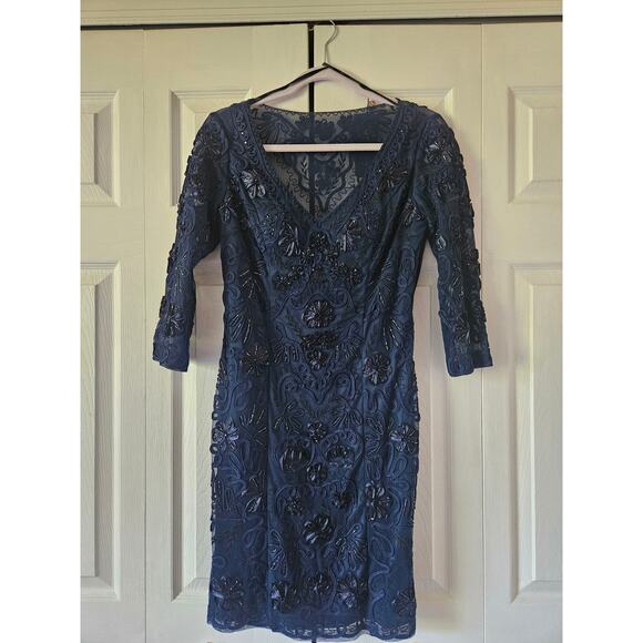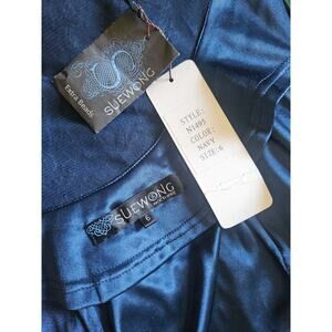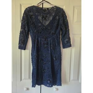 SUE WONG 3/4 Sleeve V-Neck Embellished Dress, Navy Tonal, Women's 6 NWT