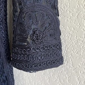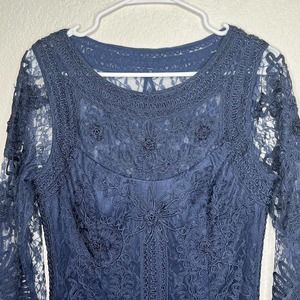 SUE WONG NOCTURN Lace Cocktail Dress Navy Blue Lace Appliqué 10 Long Sleeve t19