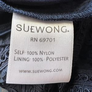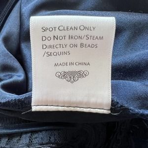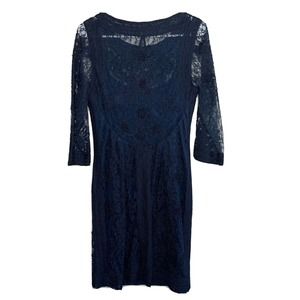 SUE WONG NOCTURN Lace Cocktail Dress Navy Blue Lace Appliqué Detail
