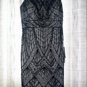 SUE WONG Size 2 Sequin ILLUSION Cocktail Dress GATSBY 1920s Black Silver $518. Brand new with tags. Ptp 15” and length 37”. Bundle and save!