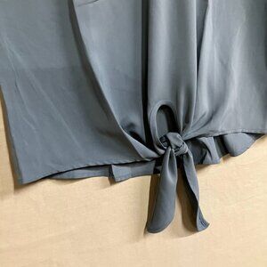 SUEANI Women's S Gray Tie Front Top Summer V-Neck Long Sleeve Twist Knot T-Shirt