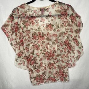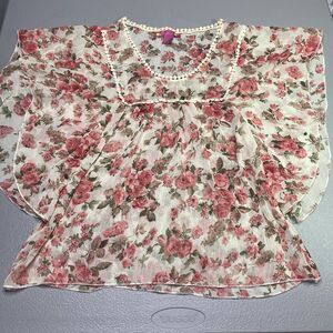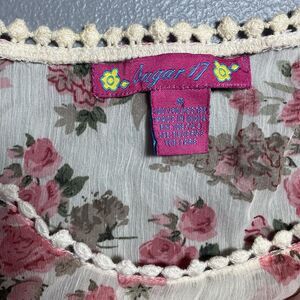SUGAR 17 Blouse Floral Sheer Crochet Scoop Neck Cottage Boho Womens S Cream Pink