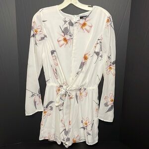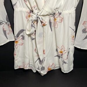 SUGAR LIPS summer long sleeve bow + tie ivory romper in women’s size XS