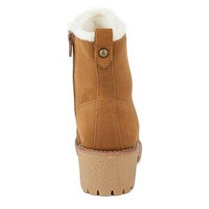 SUGAR QUIZZER Women's Block Heel Shearling Combat Boot Cognac Size 11