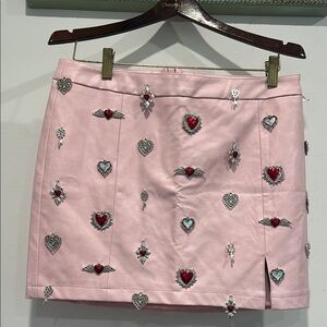 SUGAR THRILLZ Pink faux leather metal Heart charm Embellished Skirt size large