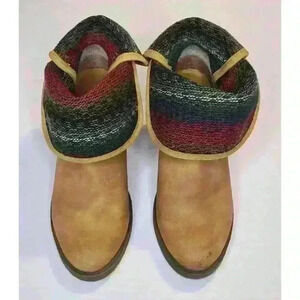SUGAR Tan Faux Suede Leather Fabric Southeastern Colors Chunk Heel Booties 7.5