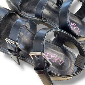 SUGAR- Women's Black Chunky Buckle Sandals - 1.5 “ base - Size 7.5 M