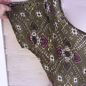 pleated at shoulder and scoop neck with a batwing/dolman short sleeve?? pit to pit-22". 19 1/4" long from top of center back neck. Hemline measures 19.5" straight across. Back is slightly curved