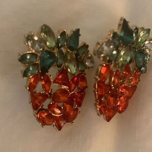 Pierced stud strawberry rhinestone earrings. Excellent condition. 1 1/4”