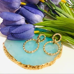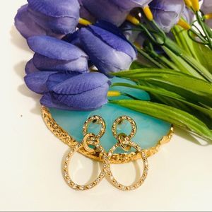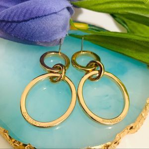 SUGARFIX golden tone shiny crystals oval shape two circle interlocking long lightweight drop earring for woman