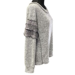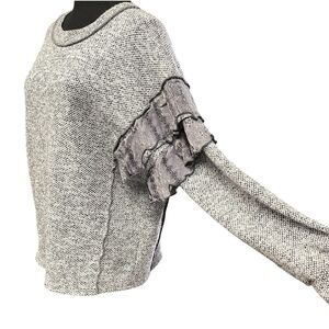 SUGARFOX Sweater Gray Pullover Ruffle Sleeves Reverse Seams NWOT