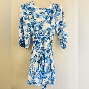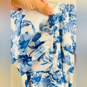 SUGARLIPS Antoinette Blue Floral Balloon Sleeve Derby Dress SIZE MED