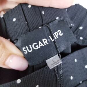 SUGARLIPS Dress Off-Shoulder Polka Dots Mini Ruffle Trumpet Sleeves - Large