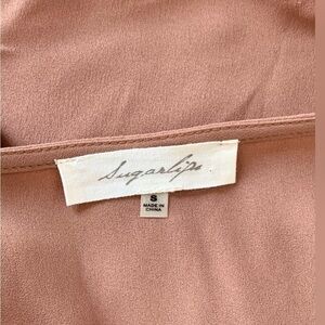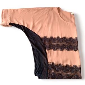 SUGARLIPS LIGHT BROWN DRAPED FLOWY SATIN TOP WITH BLACK LACE PANELS WOMEN SZ.S