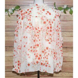 SUGARLIPS Love Bomb Blouse Size 2X Cream Floral Sheer Long Sleeve Ruffles Tie
