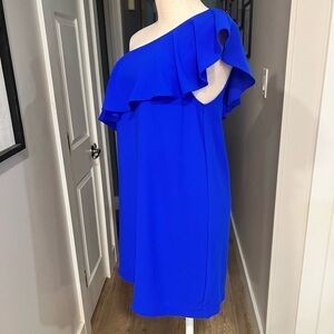 SUGARLIPS cobalt, one shoulder dress with ruffled neckline