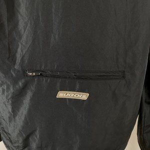 Sugoi Black Zip Up Windbreaker with Back Pocket. Toggle Pull at Waist